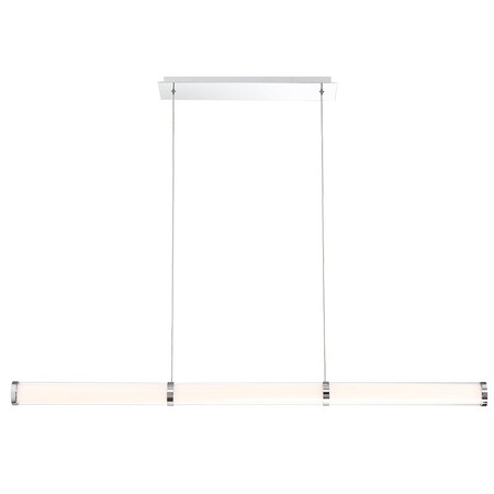 Eurofase Lighting-35684-015-Collection: Shaw, Material: Glass, Finish Color: Chrome, Width: 2.5", Height: 2.5", Length: 48", Chain Length: 96", Lamping Type: LED, Number Of Bulbs: 1, Wattage: 37 Watts, Cri: 90, Color Temperature: 3000 Kelvin, Lumens: 3200, Dimmable: Yes, Moisture Rating: Dry Rated, Desc: Shaw Large Linear Led Chandelier, Chrome Finish With Understated Opaque Tube Encased Within A Clear Acrylic Cylinder Sectioned With Chrome Trim. Product Type: Chandelier / Fixture Style: Contemporary / Fixture Design: Linear Chandelier / Fixture Shape: Linear / Shade Shape: Cylinder / Shade Type: Opaque / Hanging Support Type: Aircraft Cable / Hanging Support Length: 96 Inches / Cable/Wire Length: 96 Inches / Chain Length: 96 Inches / Slope Ceiling Compatible: Yes / Mounting Type: J-Box / Location Type: Dry Location / Bulbs Included: Yes / Lumens: 3200 / Bulb Kelvin: 3000 / Dimmable: Yes / More Information: 37W/Led 3000K/3200Lm (Dimmable) / More Information: Clear Opaque Acrylic Included / More Information: Hanging Support Type: Aircraft Cable / More Information: Rated For Dry Locations / Canopy Backplate Length: 18.5 Inches / Canopy Backplate Height: 1.5 Inches / Canopy Backplate Width: 5.25 Inches . ,-Shaw Linear Chandelier 1 Light Glass/Metal