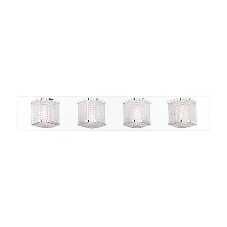 This 4 light Vanity Light from the Belgroue collection by EuroFase will enhance your home with a perfect mix of form and function. The features include a Chrome finish applied by experts. Product Features Include: Brand: Eurofase, Collection: Belgroue, SKU: 35720-010, UPC: 773546290272, Category: Bathroom Vanity Light, Finish: Chrome, Glass: Clear Retro Prismatic, Shade: Clear, Material: Glass/Metal, Width: 28.00 in., Height: 5.00 in., Max Height: 5.25 in., Extension/Depth: 4.00 in., Backplate/Canopy Width: 4.50 in., Backplate/Canopy Length: 26.75 in., Backplate/Canopy Thickness: 1.25 in., Install Position: horizontal, Weight: 6.86 lb., Included Chain/Rods/Cord: 26.75in of Stem, Included Lead Wire: 6, Warranty: 1 year warranty, Bulbs Included: Yes, Bulb Category: LED, Primary Bulb(s): 4 x 7.00 watts LED INTEGRATED LED, Color Temperature: 3000K, Color Rendering Index: 90.0000, Total Lumens: 2250, Voltage: 120V, Outdoor Rating: Suitable for Damp Locations, Safety Rating: CETLUS Damp