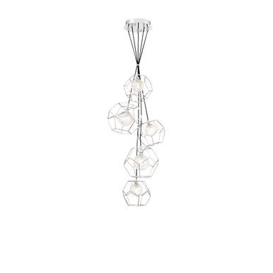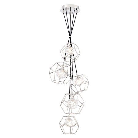 Eurofase 35903-017 Norway Hexagonal Cage with Handmade Ice Glass LED Pendant Light, 5-Light 25 Total Watts, 9"H x 19"Wx 19"L, Chrome