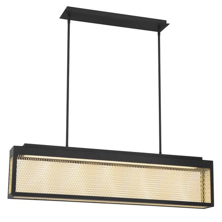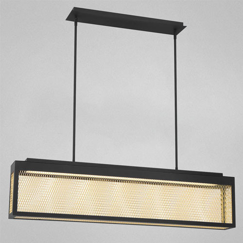 Eurofase 35930-013 Coop Golden Mesh Rectangular LED Chandelier, 1-Light 36 Watt, 12"H x 5"W x 46"L, Sand Black
