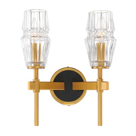 Eurofase 35937-012 Gladstone Clear Ridged Glass Wall Sconce Light, 2-Light 120 Total Watts, 14"H x 12"W, Antique Brass/Black