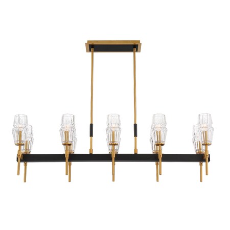 Eurofase 35941-019 Gladstone Clear Ridged Glass Island Chandelier, 10-Light 600 Total Watts, 14"H x 12"W x 44"L, Antique Brass/Black