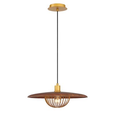 Eurofase Lighting-35952-039-Collection: Landigo, Material: Metal, Finish Color: Wood, Width: 17.75", Height: 6.5", Chain Length: 72", Lamping Type: Incandescent, Number Of Bulbs: 1, Wattage: 60 Watts, Dimmable: Yes, Moisture Rating: Dry Rated, Desc: 120V (dimmable) / More Information: Cage shades included / More Information: Hanging Support Type: Wire / More Information: Rated for dry locations / Canopy Backplate Height: 1 Inches / Canopy Backplate Diameter: 6 Inches Shade Included: Wood . . ,-Landigo - One Light Pendant-Wood Finish