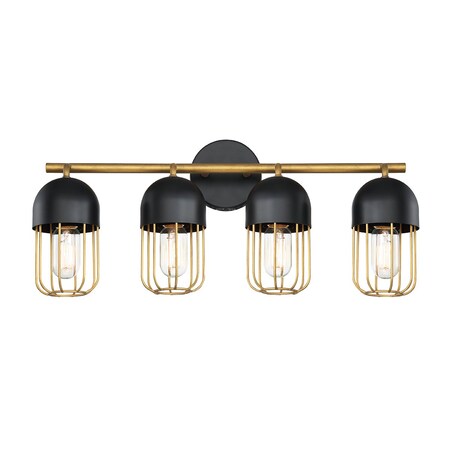 Eurofase 35962-014 Palmerston Gold Open Cage Bath Vanity Wall Mount, Damp Rated, 4-Light 240 Total Watts, 10"H x 23"W, Matte Black