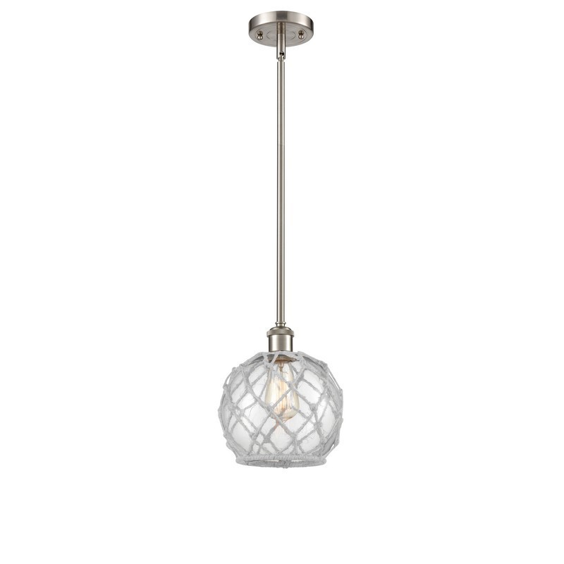 INNOVATIONS LIGHTING 516-1S-SN-G122-8RW BALLSTON FARMHOUSE ROPE 8 INCH ONE LIGHT CLEAR WITH WHITE ROPE MINI PENDANT,...