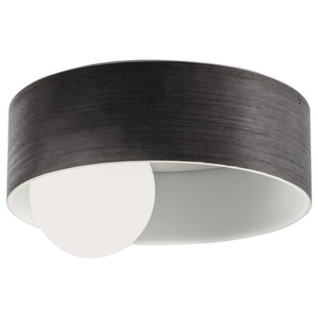 Centric Flush Mount SKU 5380 A modern interpretation of midcentury modern design, the flush mount features an Opal Glass globe within a ring of faux wood. Versatile in design and providing a clean and crisp answer to modern flush mount application, the LED fixture will fit in transitional and modern interiors. Damp Location Rated and UL/ETL Listed