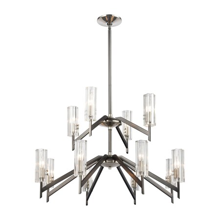 55077/8+4 ELK Lighting Aspire 12-Light Chandelier In Black Nickel With Ribbed Crystal