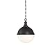 Knockout industrial-inspired fixtures take their cues from vintage factories and laboratories —and this Lilly pendant is no exception. The minimalist design perfectly balances modern sleekness with old world charm. Metal surface and fine construction details emphasize the aesthetic. And the on-trend, matte black finish adds a touch of elegance to the simple, streamlined look. Two 60W E-style bulbs inside the splendid, white, opal glass shade provide ideal illumination. This fixture will add a punch of industrial chic to your dining area, family room, kitchen, living room, bedroom, entryway, bathroom, stairway, closet, or hall. 13” wide by 20” high, so you can group several pendants together for a bold, high-style statement.