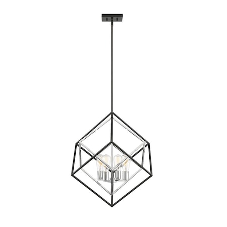 Artful, geometric joy with rectangles, squares, and diamonds —neatly arrayed and illuminated in this thoroughly contemporary design. Four 60W E-type bulbs provide warmth and light, and they're beautifully framed, seeming to float at the heart of the design. The crisp angles are accentuated by the contrasting matte black and polished chrome finishes, and the shapes shift as you view this pendant from various perspectives. The suspension rod smartly transitions from matte black to chrome. This Dexter pendant is 25" wide, and with four 12” extensions included, has an adjustable height of 28 to 85". A stunning creation that will play in any room, almost certain to take you into next-level elegance. Perfect for your foyer, dining room, living room...even your "rhombus room."