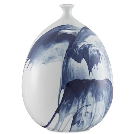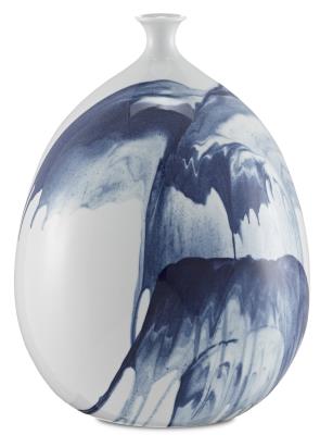 Currey and Company 1200-0070 Art Glass Vase Finish, White/Blue