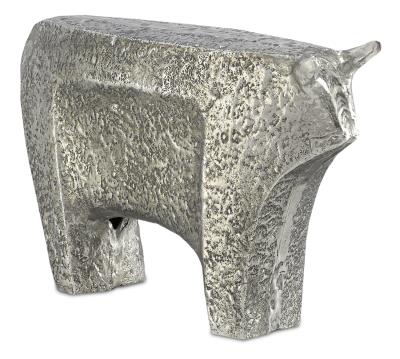 Currey and Company Sampson Textured Silver 12 1/4" Wide Bull Figurine