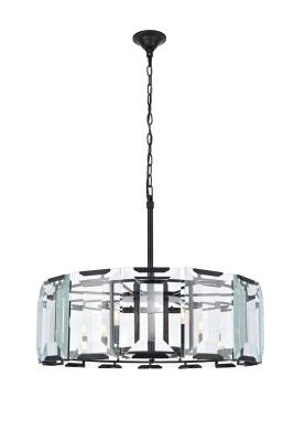 Elegant Lighting 1211D30FB Monaco - Eight Light Pendant, Flat Matte Black Finish with Clear Crystal Glass