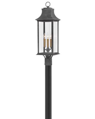 Hinkley Adair Collection Three Light 4W LED Outdoor Post Mount, Aged Zinc w/Clear Glass