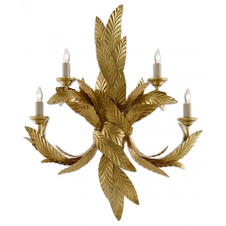 Currey and Company 5000-0132, Flower, Fruit Four Light Wall Sconce, Champ, Gld Finish, Gold Leaf