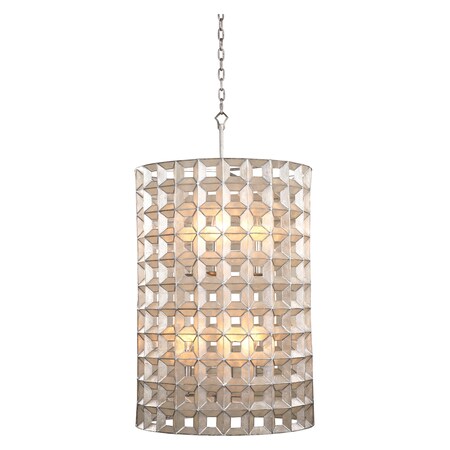 Inspired by the patterns found in Rome's Parthenon, the Prado Collection marries natural Capiz Shell with architectural design. Featuring a handcrafted open frame and cool Oxidized Silver Leaf finish.<br/><br/>Features :<br/><br/>- Materials: Steel, natural capiz<br/>- Finish: Oxidized silver leaf<br/>- Dimmable: Yes<br/>- Dimmer type: Refer to bulb manufacturer for compatibility<br/>- Sockets: 6<br/>- Lamp type: E12 Candelabra<br/>- Bulbs include: No<br/>- Listing: cETL<br/>- Rating: Dry.<br/><br/>Specifications :<br/><br/>- Product Dimensions : 36"H x 20"W x 20"D<br/>- Product Weight : 12 lbs<br/>- Product Dimensions : (Canopy) 6"W x 6"D x 1"H<br/>- Product Dimensions : (Chain length) 96"<br/>- Product Dimensions : (Wire length) 156"<br/>- Wattage : 60W<br/>- Voltage : 120V.
