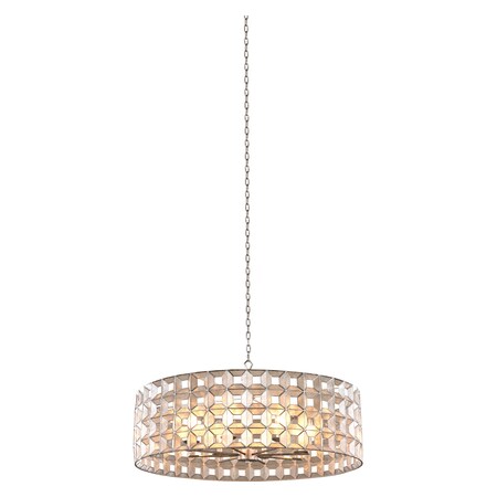 Inspired by the patterns found in Rome's Parthenon, the Prado Collection marries natural Capiz Shell with architectural design. Featuring a handcrafted open frame and cool Oxidized Silver Leaf finish.<br/><br/>Features :<br/><br/>- Materials: Steel, natural capiz<br/>- Finish: Oxidized silver leaf<br/>- Dimmable: Yes<br/>- Dimmer type: Refer to bulb manufacturer for compatibility<br/>- Sockets: 8<br/>- Lamp type: E12 Candelabra<br/>- Bulbs include: No<br/>- Listing: cETL<br/>- Rating: Dry.<br/><br/>Specifications :<br/><br/>- Product Dimensions : 16"H x 33"W x 33"D<br/>- Product Weight : 12 lbs<br/>- Product Dimensions : (Canopy) 6"W x 6"D x 1"H<br/>- Product Dimensions : (Chain length) 96"<br/>- Product Dimensions : (Wire length) 156"<br/>- Wattage : 60W<br/>- Voltage : 120V.