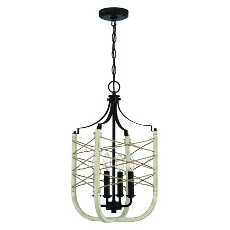 Craftmade 52334-CWESP Cavendish Foyer Pendant Lighting with Rope Accent, 4-Light, 240 Watts, Cottage White/Espresso (22" H x 14" W)