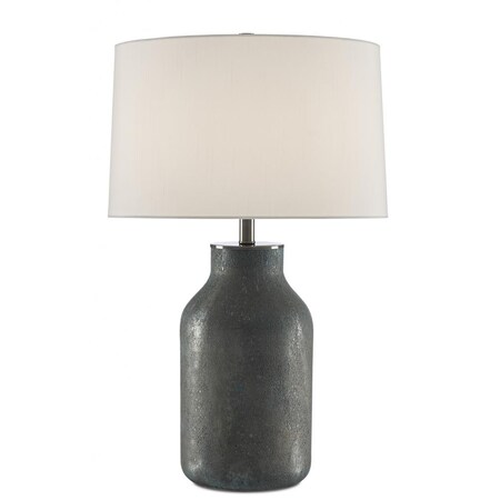 Currey and Company 6000-0493 Strayer - 1 Light Table Lamp, Antique Brown/Blue Finish with Off White Shantung Shade