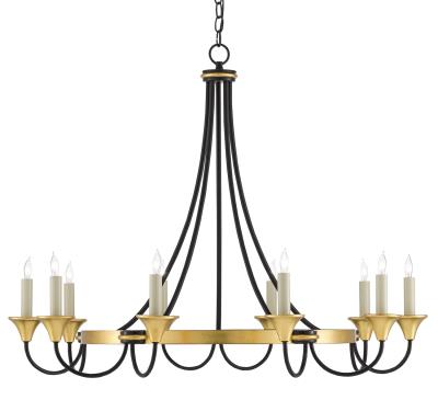 Currey and Company 9000-0474 Transitional Ten Light Chandelier Finish, Washed Black/Gold Leaf