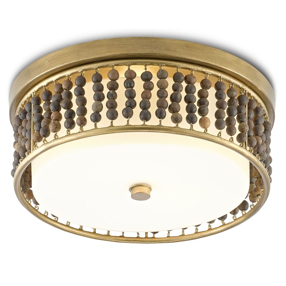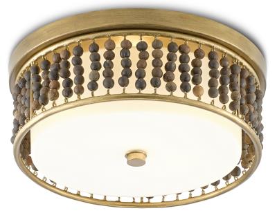 Currey and Company 9999-0047 Ferber - 2 Light Flush Mount, Brass/Natural Finish with Opaque Glass