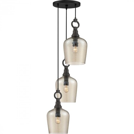 Quoizel CKKD2717WT Kendrick Smoked Hammered Glass Pendant Ceiling Lighting, 3-Light, 300 Watts, Western Bronze (19"H x 17"W)