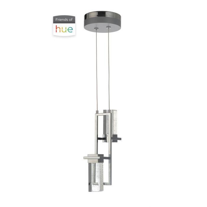 Craftmade P780CH2-HUE Hue Crystal LED Smart Pendant Lighting, 2-Light, 22 Watts, Chrome (16"H x 8"W)