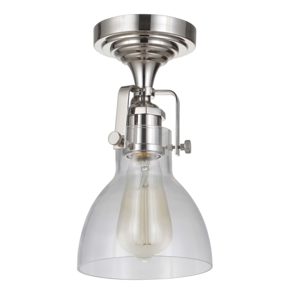 - DETAILS: Polished Nickel Finish and Clear Glass Shade