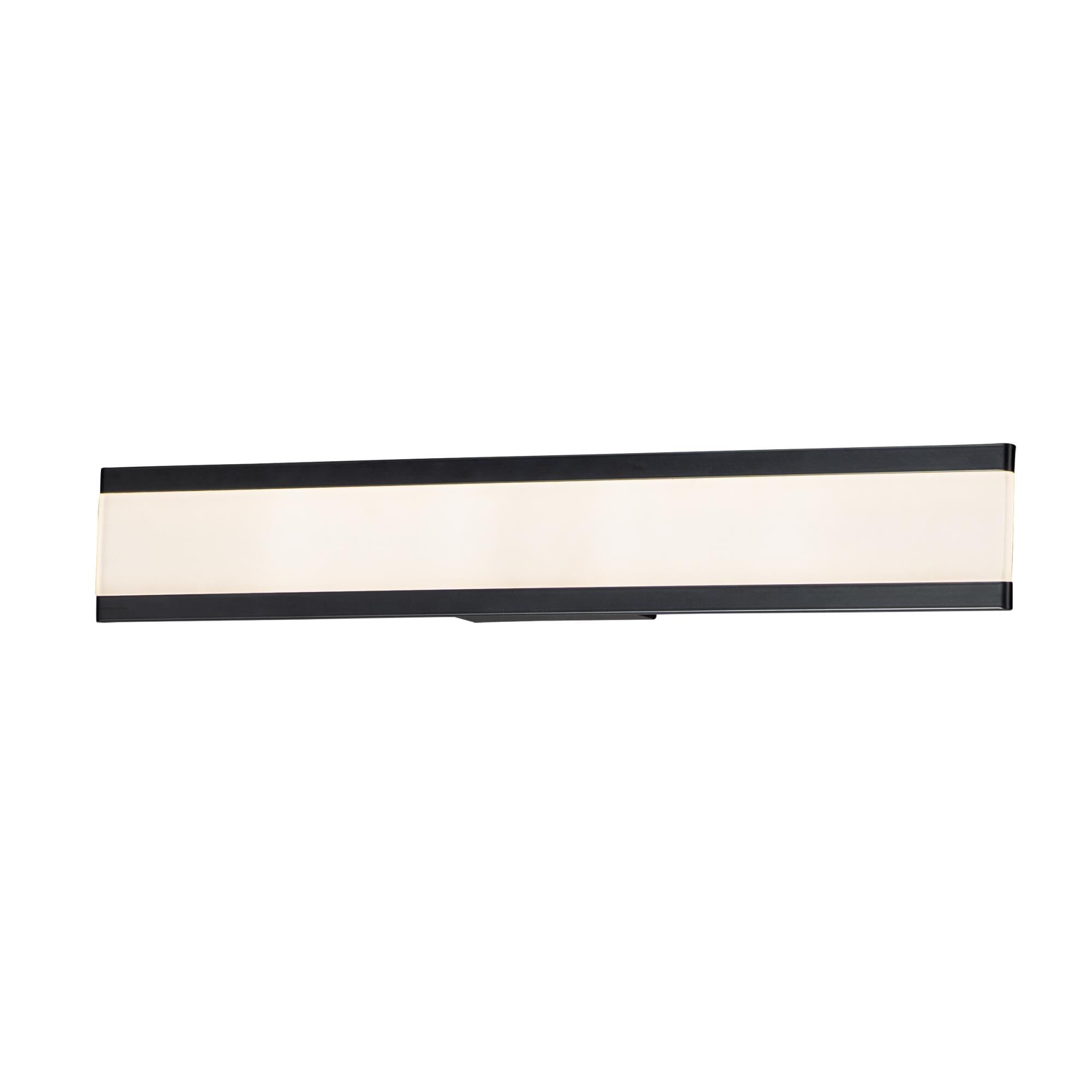 Dual Black aluminum channels support a Frost acrylic diffuser that projects liht into the room when illuminated. Available in 4 lenths, this collection can be installed horizontal above the mirror or vertical on each side. Warranty: 2 YearsColor Temperature: 3000 / Lumens: 2400 / CRI: 90 / Rated Life: 50000 Hours / Mountin Direction: Indirect / Shade Included: Yes.
