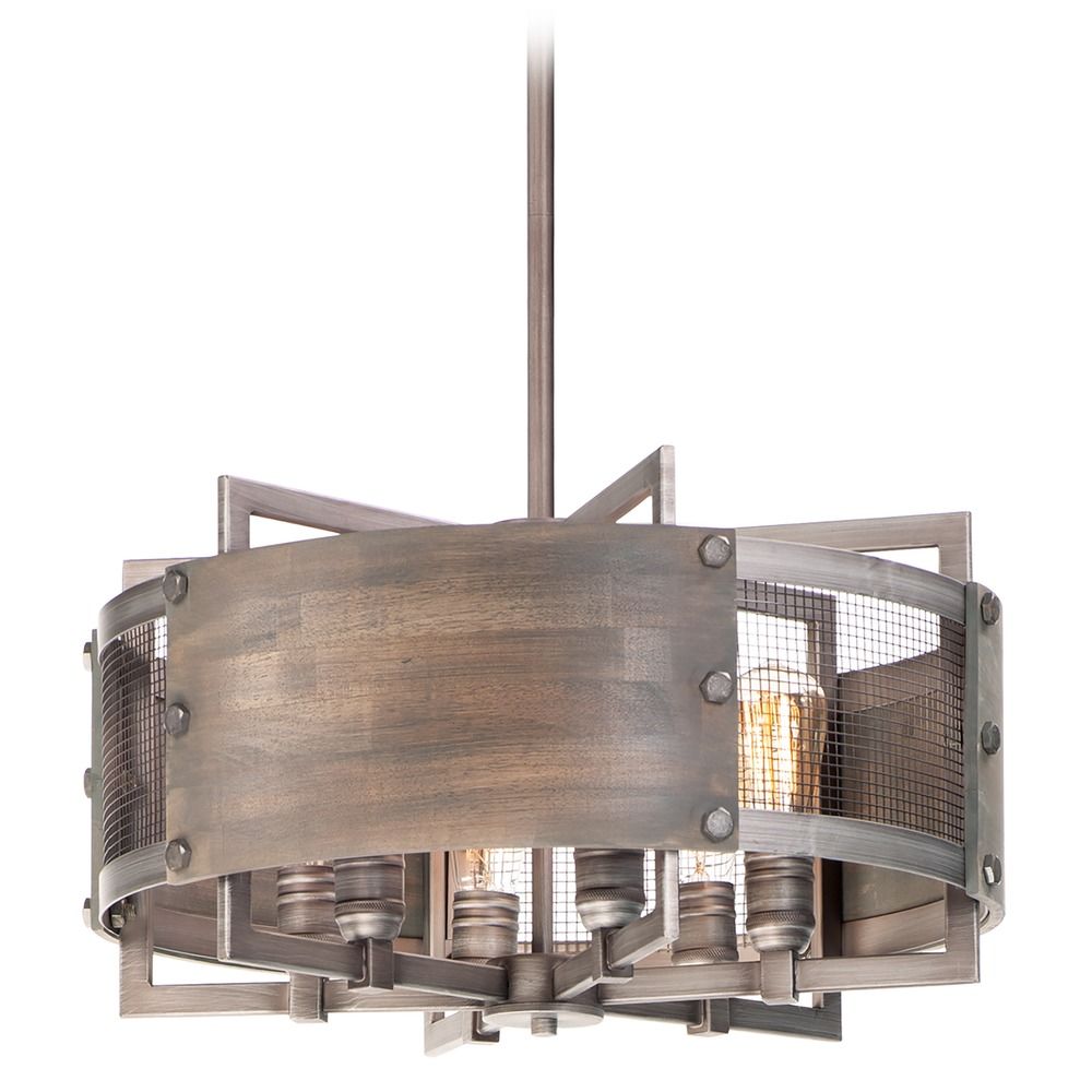 Maxim 25265BWWZ Outland Modern Farmhouse Barnwood & Metal Mesh Panel Drum Pendant Ceiling Light, 6-Light 360 Total Watts, 13" H x 22" W, Barn Wood/Weathered Zinc