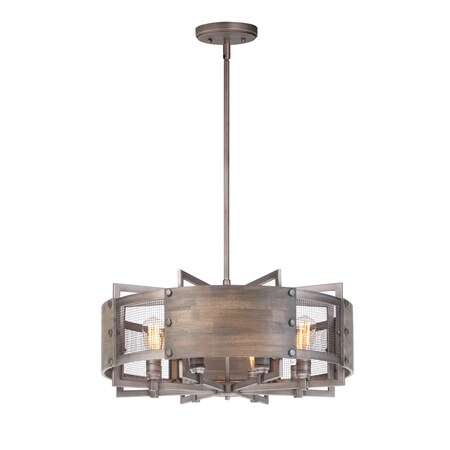 Maxim 25266BWWZ Outland Modern Farmhouse Barnwood & Metal Mesh Panel Drum Pendant Ceiling Light, 8-Light 480 Total Watts, 13"H x 28"W, Barn Wood/Weathered Zinc