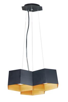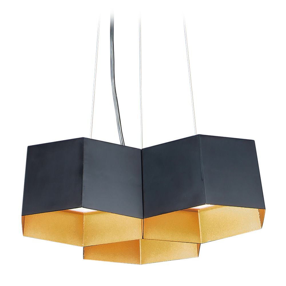 Modern art reflects in the sophisticated and fun design of this three-light LED pendant light from the Honeycomb collection by Maxim Lighting, a stunning fixture that expresses signature style and personality. Light up a contemporary dining or living space with this cluster-look pendant fashioned from black hexagonal metal shades lined in gleaming gold. Energy-efficient lighting illuminates with a soft glow thanks to acrylic diffusers that sit recessed in each compartment.