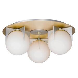 Maxim 32470SWSBRBP Finn Mid-Century Modern Satin White Glass Ball Flush Mount, 3-Light 120 Total Watts, 8"H x 18"W, Satin Brass/Brushed Platinum