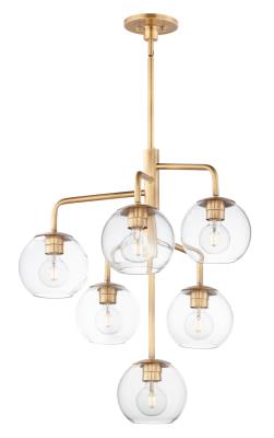 Maxim 38416CLNAB Branch Clear Glass Ball Downlight Chandelier, 6-Light 360 Total Watts, 29" H x 27" W, Natural Aged Brass