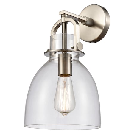 INNOVATIONS LIGHTING 412-1W-SN-8CL RESTORATION NEWTON 8 INCH 1 LIGHT CLEAR GLASS DOME SHAPE WALL SCONCE, BRUSHED...
