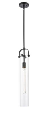 Innovations Lighting 413-1S-BK-4CL-LED Pilaster - 4.88" 5W 1 LED Mini Pendant, Matte Black Finish with Clear Cylinder Glass