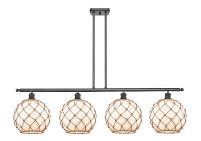 INNOVATIONS LIGHTING 516-4I-BK-G121-10RB BALLSTON LARGE FARMHOUSE ROPE 48 INCH 4 LIGHT WHITE LARGE FARMHOUSE GLASS...