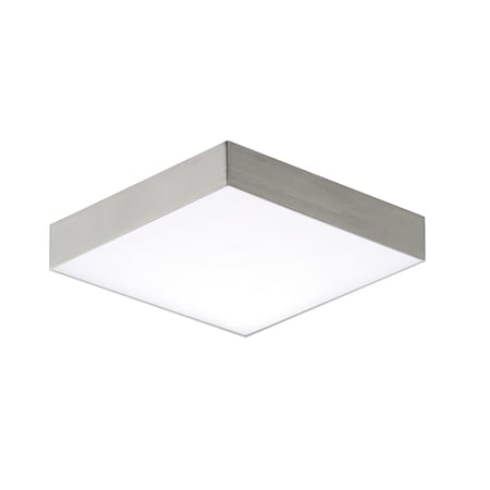 Thin discs of evenly illuminated LED create the impression of recessed lighting. The die-cast aluminum housings are available in White, Black, Satin Nickel, and Polished Chrome all with a thoughtfully recessed White polycarbonate diffuser. High efficiency and good color rendering make this a perfect choice for your next project. Use the optional pendant adapter to convert any size to a hanging fixture.<br>LED Flush Mount<br>Collection: Trim<br>Finish: Satin Nickel<br>Width: 4.75"<br>Height: 0.75"<br>Length: 4.75"<br>Safety Listing: Wet<br>Bulbs: 1 X PCB 12.50W 920lm, Included