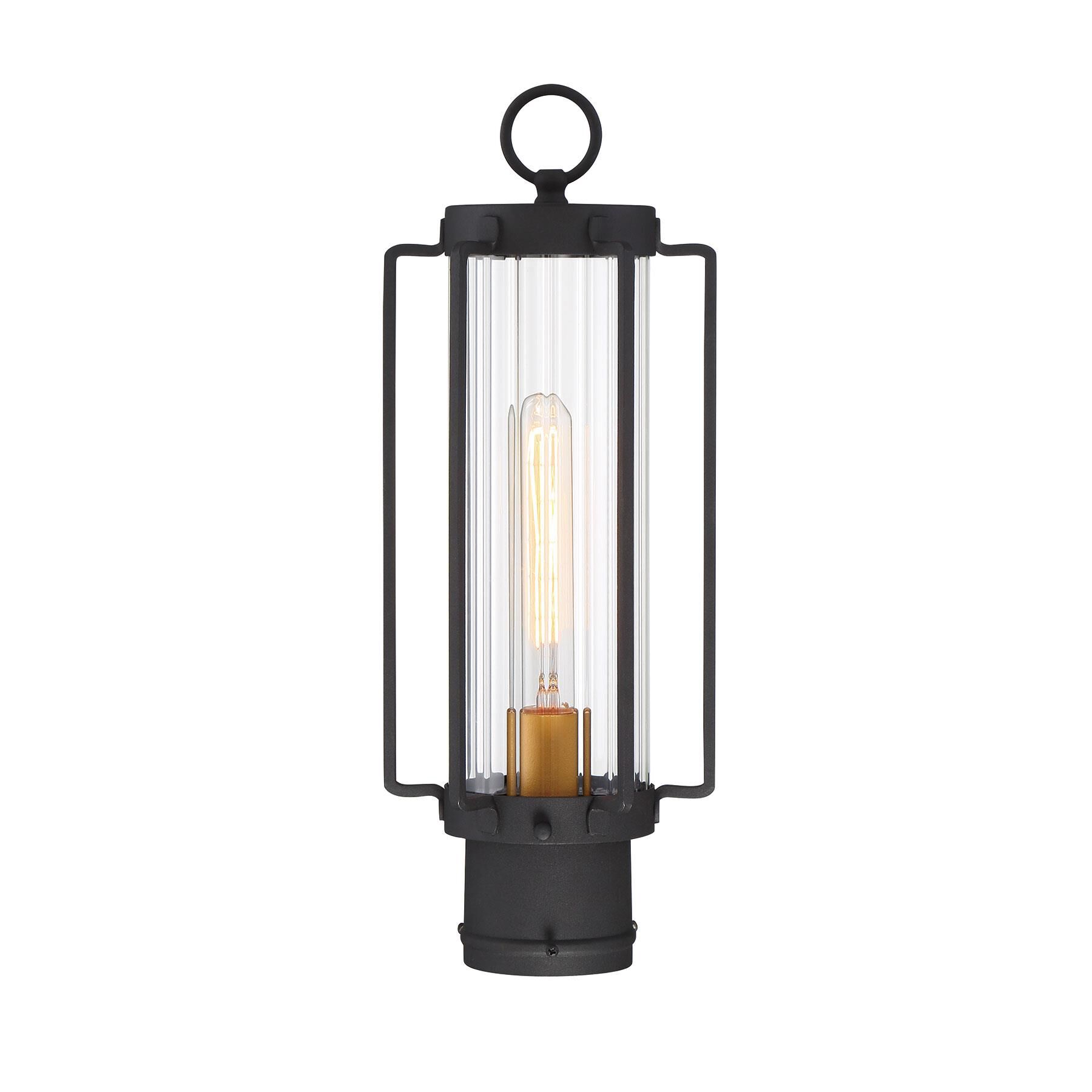 Give your home exterior a fancy touch with this modern outdoor post light from the Avonlea collection by Minka Lavery. It features a handsome sand black finish with a gold finish socket and clear ribbed glass shade for added style. It's ideal next to a front or back door, or on the wall of your back porch.