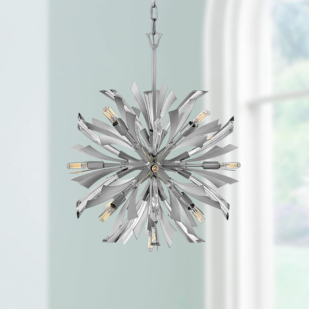 Fredrick Ramond Lighting-FR40904GG-Collection: Vida, Material: Steel, Finish Color: Glacial, Width: 22", Height: 26", Length: 22", Chain Length: 120", Lamping Type: Incandescent, Number Of Bulbs: 13, Wattage: 60 Watts, Moisture Rating: Dry Rated, Desc: Vida's modern design bursts with a flourishing style that is both highly dramatic and finely sculpted. A statement piece with crystal accents and unique canopy detailing, Vida injects a thrilling dash of contemporary inspiration to its surroundings. 15 Years Finish/Lifetime on Electrical Wiring and Components / Canopy Included: Yes / Sloped Ceiling Adaptable: Yes / Canopy Diameter: 6.50. ,-Vida-9W 9 LED Pendant-22 Inches Wide by 26 Inches Tall-Glacial Finish