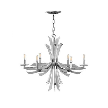 Fredrick Ramond Lighting-FR40908GG-Collection: Vida, Material: Steel, Finish Color: Glacial, Width: 29.25", Height: 25", Length: 29.25", Chain Length: 120", Lamping Type: Incandescent, Number Of Bulbs: 6, Wattage: 60 Watts, Moisture Rating: Dry Rated, Desc: Vida's modern design bursts with a flourishing style that is both highly dramatic and finely sculpted. A statement piece with crystal accents and unique canopy detailing, Vida injects a thrilling dash of contemporary inspiration to its surroundings. 15 Years Finish/Lifetime on Electrical Wiring and Components / Canopy Included: Yes / Sloped Ceiling Adaptable: Yes / Canopy Diameter: 6.50. ,-Vida - Six Light Medium Chandelier-Glacial Finish