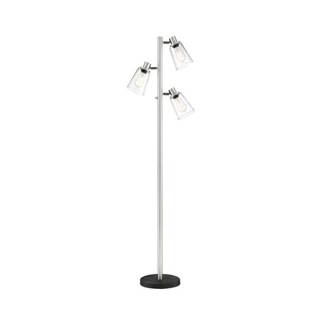 3-lite Floor Lamp, Bn/blk/clear Glass Shade, E27 V 40wx3
