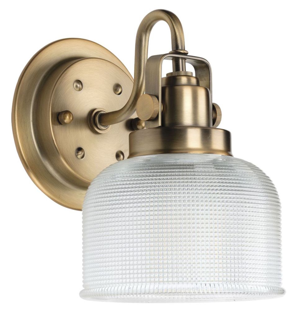 Progress Lighting Archie Collection 1-Light Clear Double Prismatic Glass Coastal Bath Vanity Light Vintage Brass