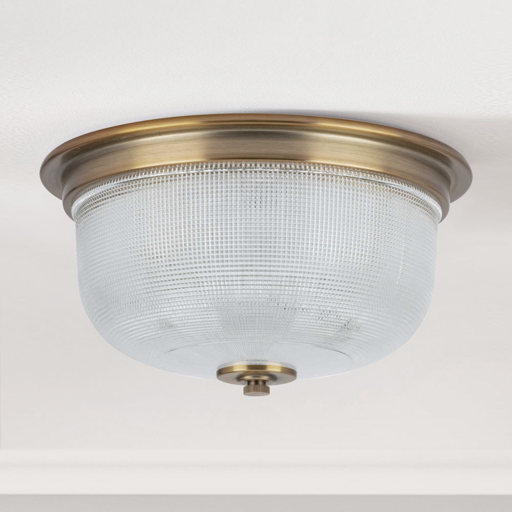 Progress Lighting P3740-163 Archie Two-Light Flush Mount with Clear Double Prismatic Glass, 6-1/4" x 12-3/8" x 12-3/8", Vintage Brass