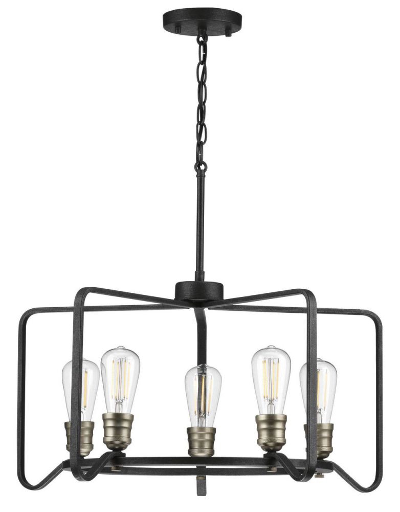 Foster Collection 5-Light Farmhouse Chandelier Light Gilded Iron, Black, 14" x 25" x 25"