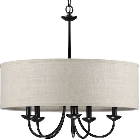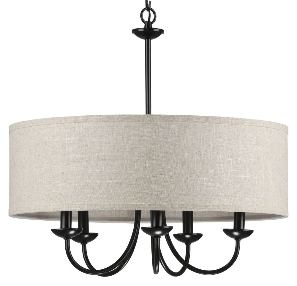 Progress Lighting Drum Shade Collection 5-Light Harvest Linen Shade Farmhouse Chandelier Light Matte Black