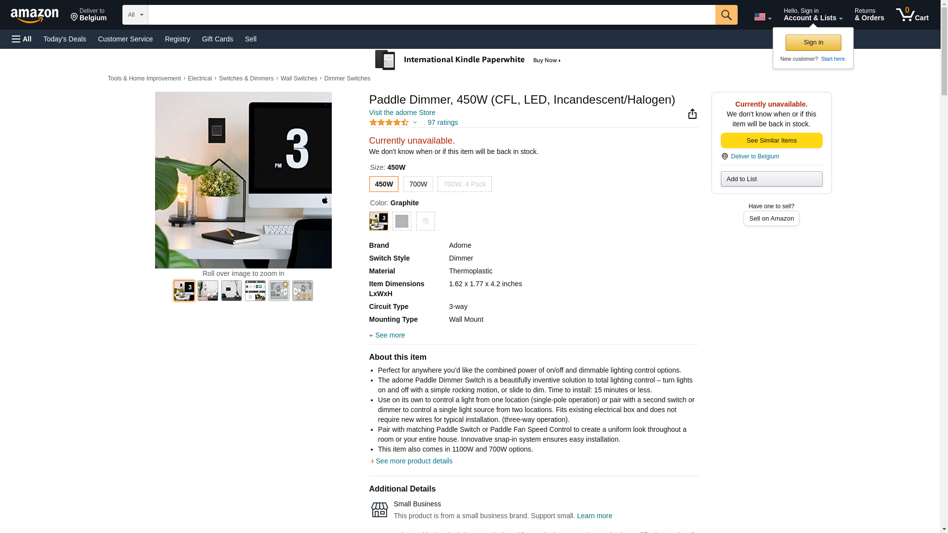 adorne, Home Lighting Controls, Dimmer Light Switch, Graphite, Paddle Dimmer, ADPD453LG2