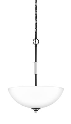 The transitional style of the Conrad collection is both sleek and modern. A stately silhouette finished in matte black and accented with brushed nickel creates the perfect amount of sophistication, and the etched glass shades add a pleasant glow to any room.
