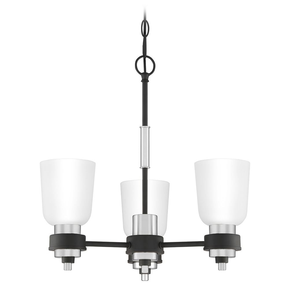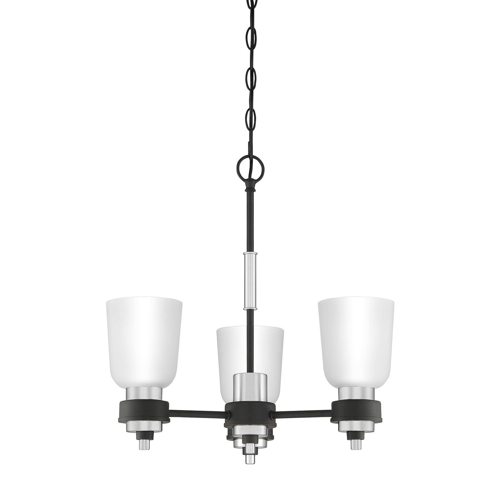 The transitional style of the Conrad collection is both sleek and modern. A stately silhouette finished in matte black and accented with brushed nickel creates the perfect amount of sophistication, and the etched glass shades add a pleasant glow to any room.