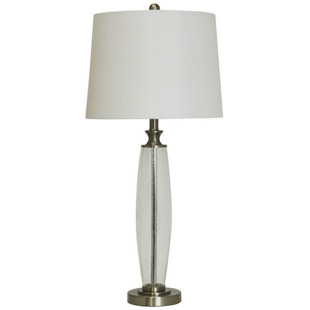 This 1 light Table Lamp from the Signature collection by StyleCraft Home Collection will enhance your home with a perfect mix of form and function. The features include a Clear Glass finish applied by experts. Product Features Include: Brand: StyleCraft Home Collection, Collection: Signature, SKU: L311662DS, UPC: 720354067060, Category: Table Lamp, Finish: Clear Glass, Shade: White Hardback Fabric, Material: Glass/Hardback Fabric, Width: 15.00 in., Height: 32.00 in., Diameter: 15.00 in., Backplate/Canopy Width: 0.00 in., Backplate/Canopy Length: 0.00 in., Weight: 10.00 lb., Included Chain/Rods/Cord: (1) x 5ft cord, Bulbs Included: No, Bulb Category: Incandescent, Primary Bulb(s): 1 x 150.00 watts Medium Base , Voltage: 120V, Safety Rating: Dry