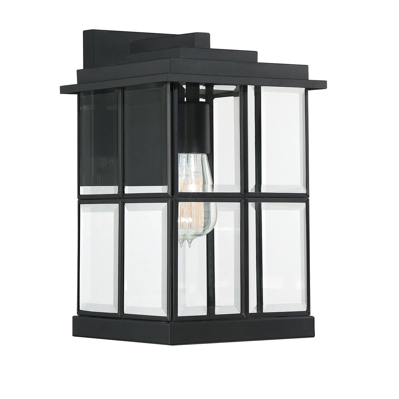 Quoizel MGN8408MBK Mulligan Clear Beveled Glass Outdoor Wall Lantern, 1-Light 100 Watt, 13" H x 8" W, Matte Black